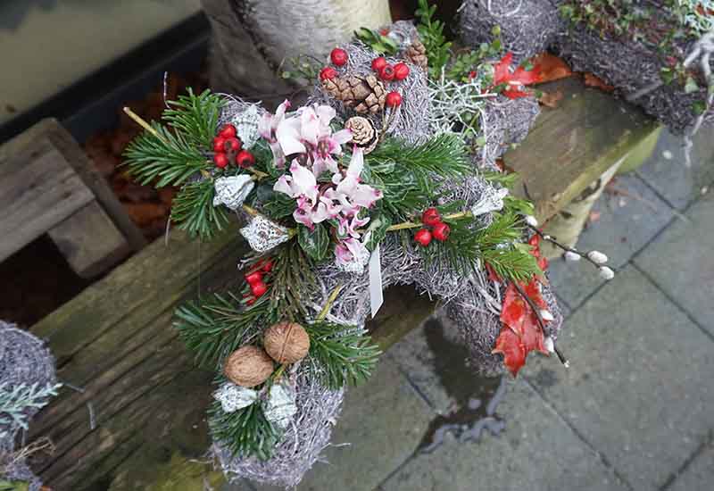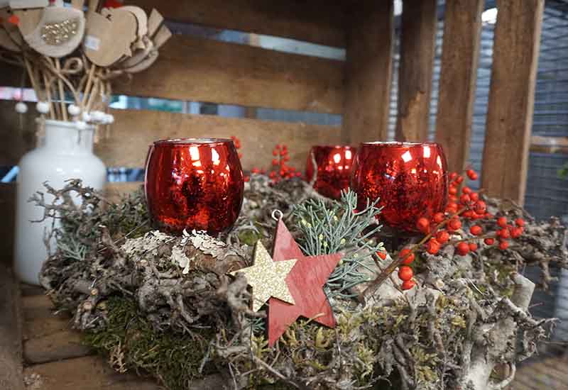 Ob Adventskranz, winterlicher Strauß oder stilvolles Arrangement: Wir gestalten Weihnachtsmomente, die Räume erstrahlen lassen.